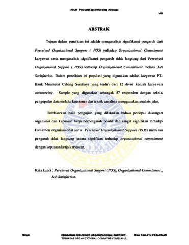 DIAN DWI AYU PARASWATI, 041041010 (2013) PENGARUH PERCEIVED ORGANIZATIONAL SUPPORT TERHADAP ORGANIZATIONAL COMMITMENT MELALUI JOB SATISFACTION KARYAWAN PT. BANK MUAMALAT CABANG SURABAYA. Thesis thesis, UNIVERSITAS AIRLANGGA.