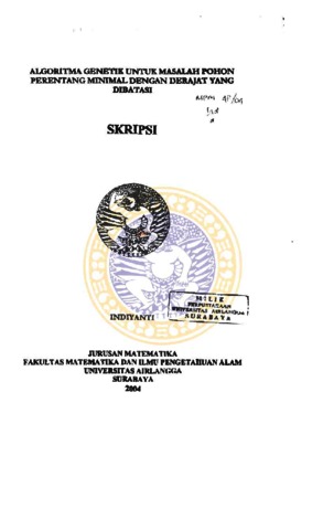 INDIYANTI, 080012222 (2004) ALGORITMA GENETIK UNTUK MASALAH POHON PERENTANG MINIMAL DENGAN DERAJAT YANG DIBATASI. Skripsi thesis, Universitas Airlangga.
