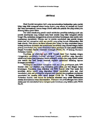 AYUNINGTYAS PUJA K. W, 040214462 (2008) PERLAKUAN AKUNTANSI TERHADAP PEMBIAYAAN MURABAHAH PADA BANK SYARIAH : Studi kasus pada BPR Syariah Jabal Tsur Pandaan. Skripsi thesis, UNIVERSITAS AIRLANGGA.